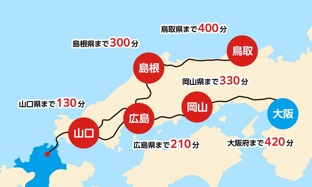 福岡は九州の北部に位置し、九州各県へのアクセスが良好です。東西南北いずれの方面へも均等に配送できるため、九州全域を効率的にカバーする物流拠点として最適です。