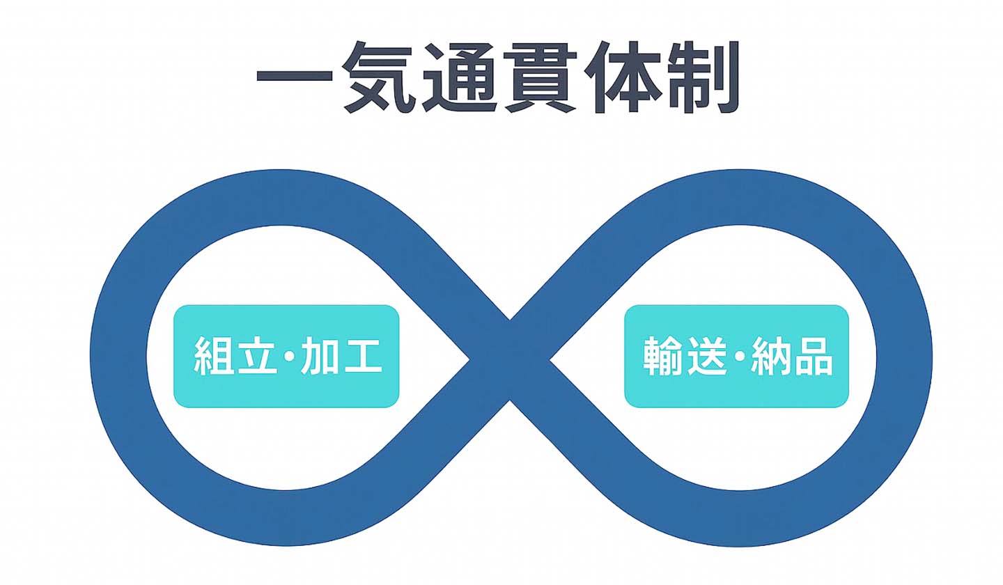 組立だけで完結する外注先や、運ぶだけの輸送会社と異なり、工程全体を一括管理することで「情報が一貫し、責任も明確」になります。