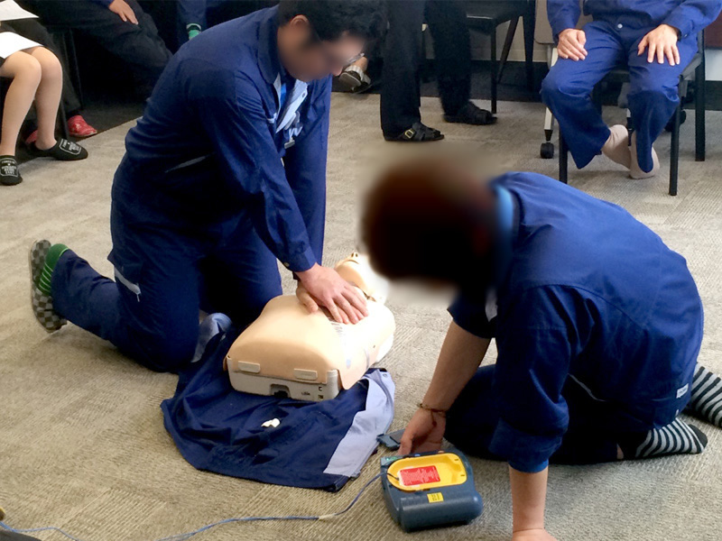 今年も、AED講習開催しました。いざという時に適切に使用できるよう1年に1度は開催しています